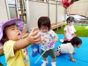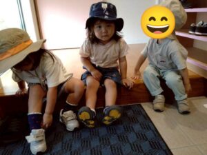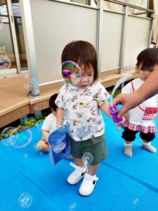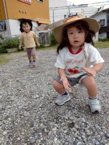 今日は風が冷たかったので水遊びを変更して戸外遊びをしました♪