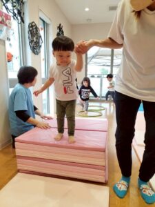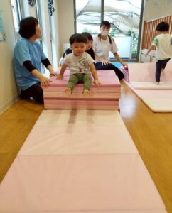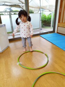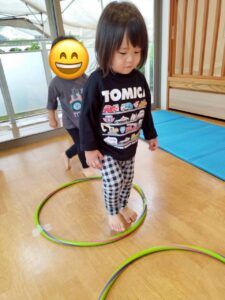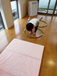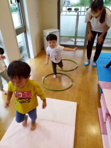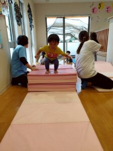 今日の活動 ⭐️マット遊び マットの山や橋を登ったり降りたりして身体を動かしました🙂 フラフープやマットを使ってジャンプも楽しみましたよ😆