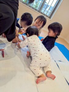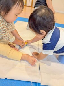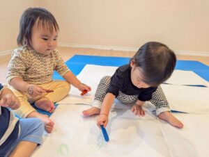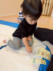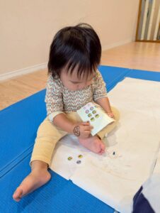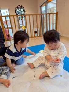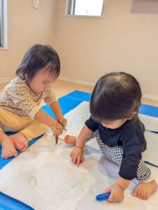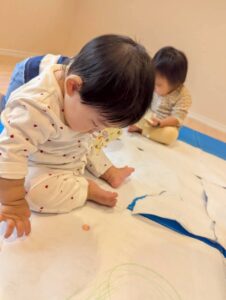 ⭐️お絵描き、シール貼り 大きな紙にお絵描きをしたり、シール貼りをして楽しみました😊