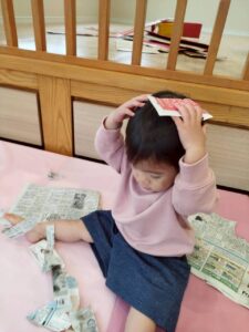 新聞紙遊び&戸外遊び~11月4日の子どもたち~