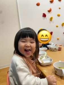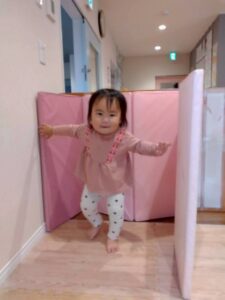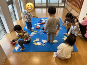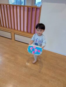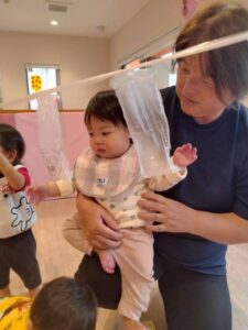 吊り下がっている袋に触れたり、引っ張ったりして楽しんでいたお友だち☺️