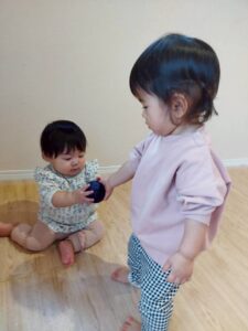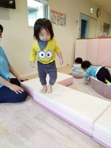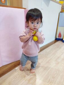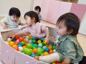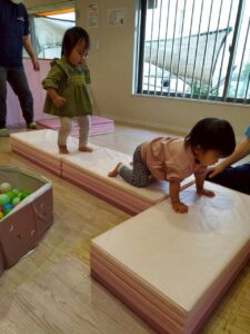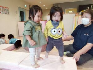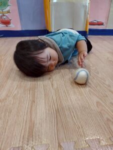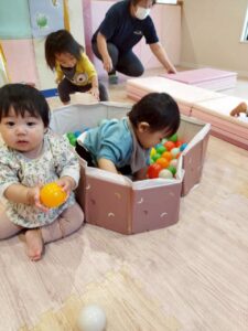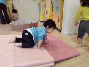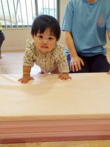 ボールに触れたり、手足を使ってマット遊びをしたりする姿が見られましたよ☺