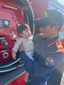 消防士さんと一緒に記念撮影をしたり、抱っこもして下さりました📸