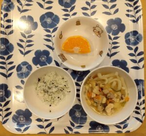(後期食) ⭐️朝のおやつ ·市販菓子 ⭐️給食 ·白ごはん ·けんちんうどん