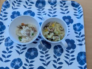 今日の献立です🍚 (普通食) ⭐️朝のおやつ ・市販菓子 ⭐️給食 ・かしわ飯 ・さっぱり塩ラーメン