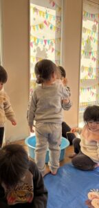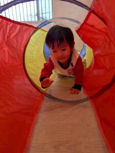 マットや感触マットの上を歩いたり、トンネルをくぐったりして身体を動かしました😊