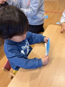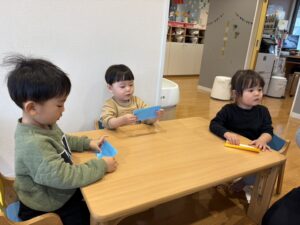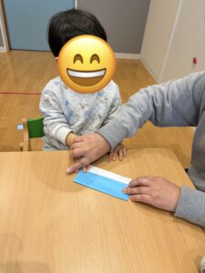 折り紙で新幹線を折りました🚅難しいところは保育士と一緒に作りましたよ♪