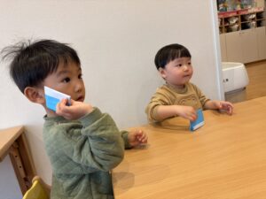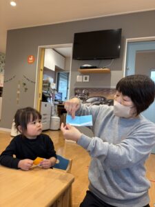 タオル&折り紙遊び~2月5日の子どもたち~