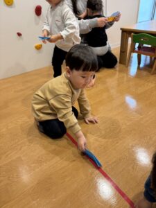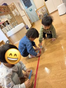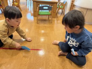 完成すると、嬉しそうにレールの上をお友だちと走らせていました☺️