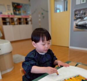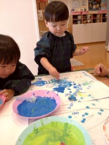 クレヨンでお絵描きをした後に絵の具で色を塗り、はじき絵を楽しみました☺️