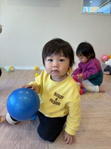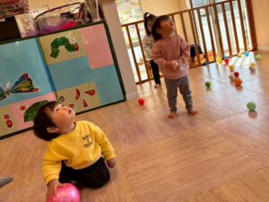 ボールを投げたり、転がしたりして楽しむお友だち☺️