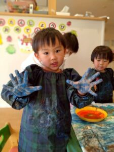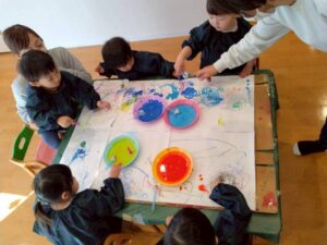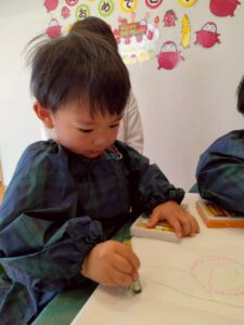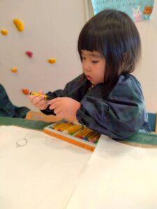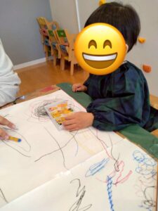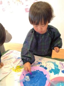 クレヨンでお絵描きをした後に絵の具で色を塗り、はじき絵を楽しみました☺️