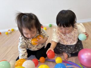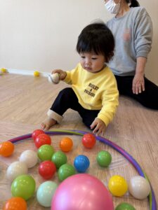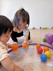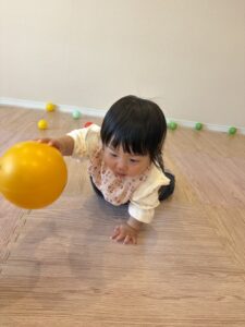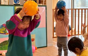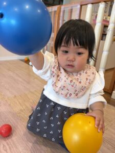 ボールを投げたり、転がしたりして楽しむお友だち☺️