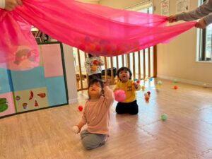 途中、ペタペタとボールを張り付けたり、取ったりして指先を使いながら遊びました😆