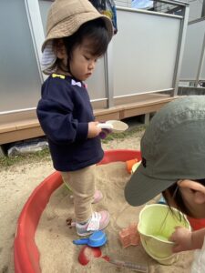 お庭でお花を見たり、砂の感触に触れたりして過ごしました🌷🪣