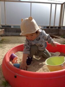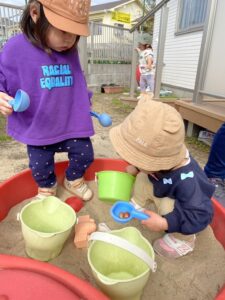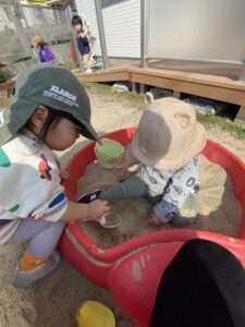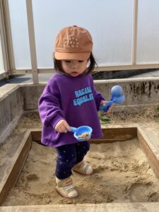お庭でお花を見たり、砂の感触に触れたりして過ごしました🌷🪣