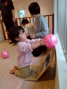 ボールの感触を味わいながら遊びを楽しみました♪