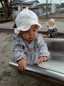 すべり台に挑戦したり、砂をスコップですくったりして夢中で遊ぶ子どもたち😙