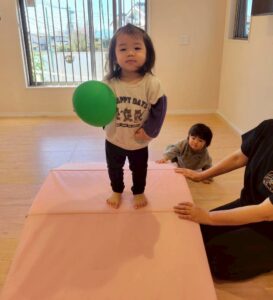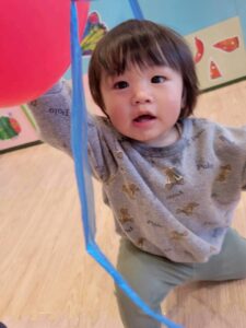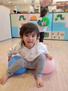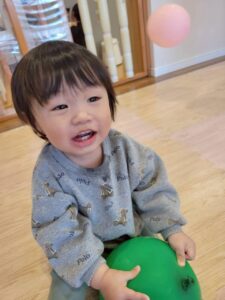 風船を握ったり、風船の上に座ってみたり😆