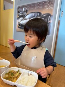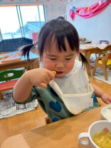 1,2歳児さんはシャボン玉遊びでシャボン玉を追いかけたり、どのくらいの強さで吹くとシャボン玉が出来るのか口周りの筋肉を使いながら息の調節を頑張っていました✨👏