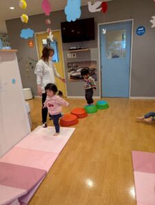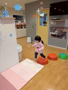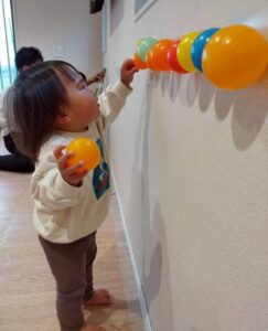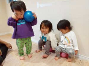 ボールを蹴る、投げる、バランスをとる、貼るなど全身の動きを楽しみました♪
