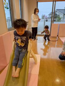 滑り台や、マットを使って全身を動かすことを楽しみました♪