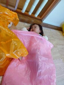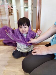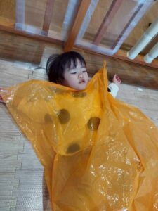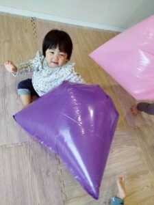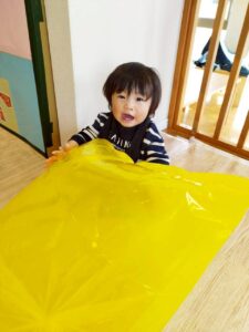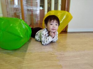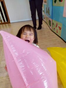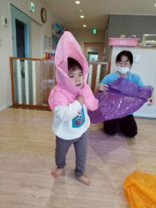 ポリ袋が膨らむ様子や、色、音、色々なものに見立てて遊ぶことを楽しみました😊