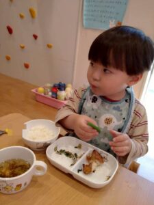 園で収穫したスナップエンドウも食べました♪