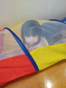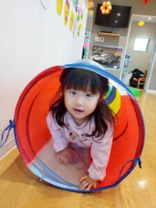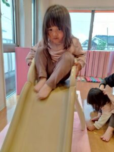 滑り台を「もう一回!」と繰り返し滑ったり、トンネルから「ばあ!」と顔を出したりと、元気いっぱいの子どもたち♪