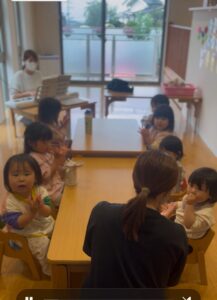 手をひらひらさせたり、体を揺らしたりしながら、かわいい歌声を聞かせてくれた子どもたちです✨