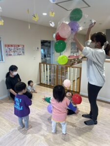 風船を追いかけて、上手に投げたり、蹴って遊ぶ姿が見られましたよ🤩✨