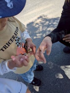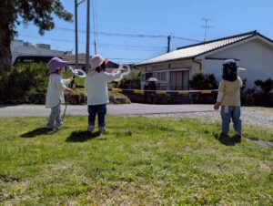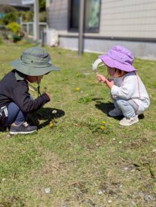 風車で遊んだあとは、お花を摘んだり、虫探しを楽しみました😊