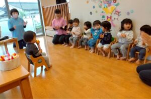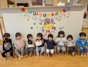 お友だちや、先生から「おめでとう」と言われると嬉しそうなお友だちでした💕
