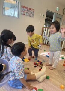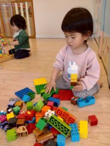 室内遊びでは知育玩具やブロック遊びもしました🧱