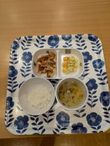 お散歩の後はシャワーを浴びて美味しい給食です🍚