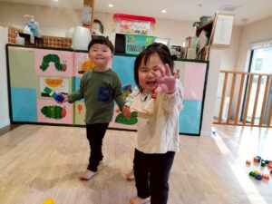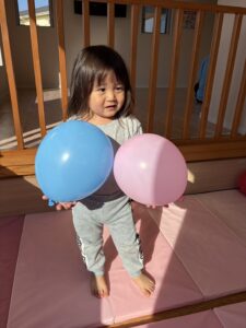 音楽に合わせて動物になりきったり、好きな色の風船を選んで飛ばしたりしてみんなで遊びました💓