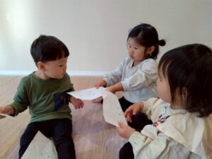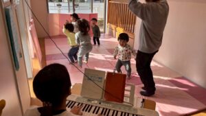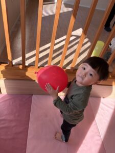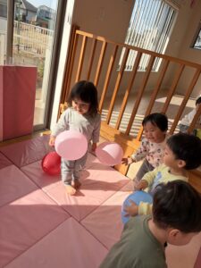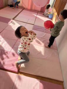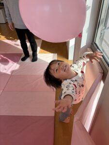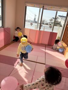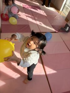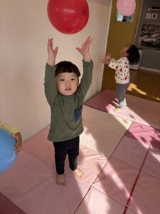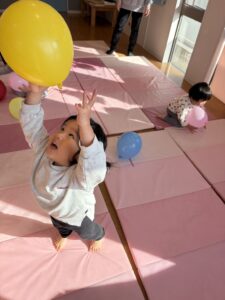 音楽に合わせて動物になりきったり、好きな色の風船を選んで飛ばしたりしてみんなで遊びました💓